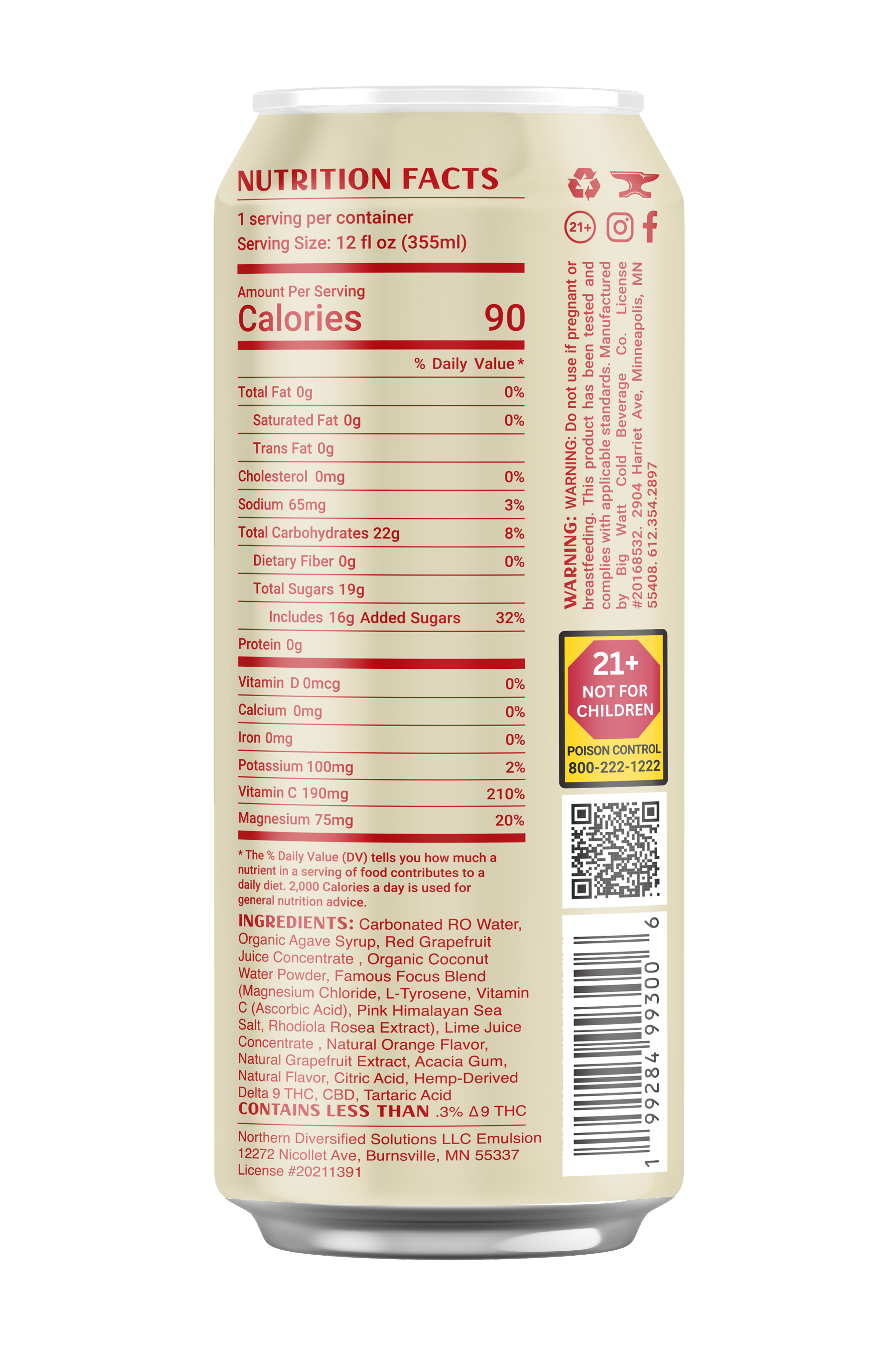 Fresh grapefruit juice, lime, organic coconut water, organic agave, lemongrass, adaptogens.